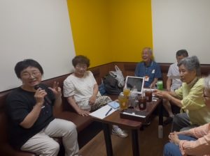 7月26日定例活会は、多摩区登戸駅前のカラオケ店に行きました。この日は朝から「命の危険が・・・」といわれる猛暑日でしたが、お店でカラオケするのはコロナ禍前以来のことで、みんなウキウキしながら集合しました。